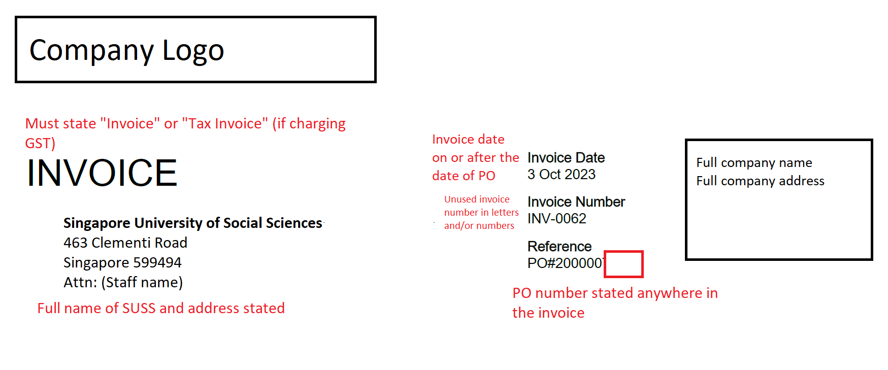 Vendors will not know what constitutes as a good formatted invoice. Staff should point it out and advice it to them before sending it to SSC Finance Representative. This will reduce “back and forth” emails.